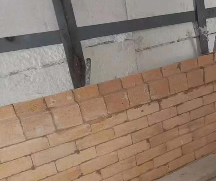 出口煙道有三通、彎頭、方圓節(jié)等,是砌筑的重點和難點。彎頭處的幾圈對嘴磚成弧狀,加工磚時應(yīng)以金屬殼體的弧度為標(biāo)準(zhǔn)進(jìn)行,加工磚尺寸務(wù)求準(zhǔn)確。砌筑前檢查金屬殼體的偏差。如爐殼偏差很小則以爐殼為導(dǎo)面,耐火材料緊貼著爐殼砌筑。如爐殼偏差較大,則需要制作弧度板(弧度板的直徑為保溫磚的直徑),在砌筑保溫磚時打弧度板,拉小線砌筑。保溫磚的直徑尺寸控制準(zhǔn)確。重質(zhì)耐火磚緊貼著保溫磚砌筑。