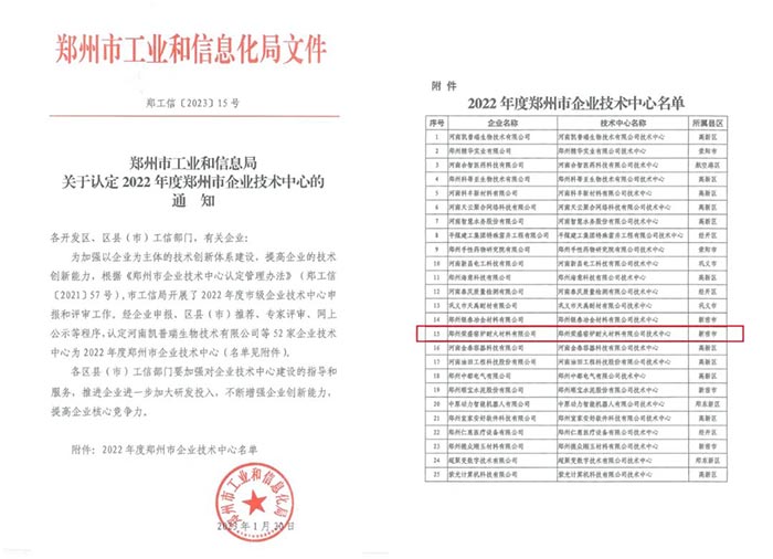 近日,鄭州市工業(yè)和信息化局公布了《鄭州市工業(yè)和信息化局關(guān)于認(rèn)定2022年度鄭州市企業(yè)技術(shù)中心的通知》。經(jīng)市工業(yè)和信息化局組織專家評(píng)審和綜合評(píng)估,鄭州榮盛窯爐耐火材料有限公司企業(yè)技術(shù)中心被認(rèn)定為2022年度鄭州市企業(yè)技術(shù)中心。