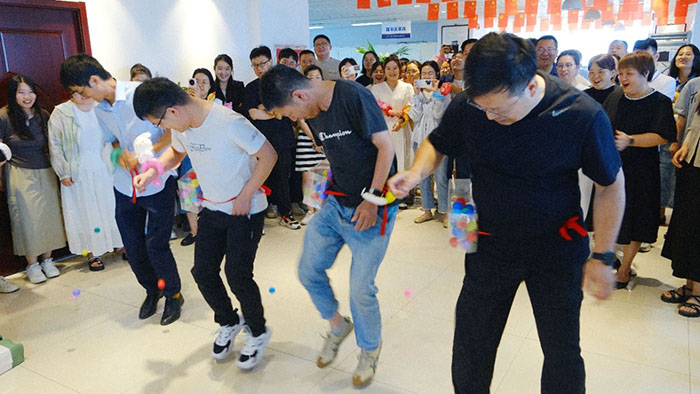 接著近半年入職的小伙伴們輪流登臺做自我介紹,并分隊(duì)開始進(jìn)行丟沙包。這邊用力擲出,那邊左閃右避,不時做出高難度跳躍動作。觀眾們的加油聲高過一陣又一陣,現(xiàn)場洋溢著青春活力氛圍。