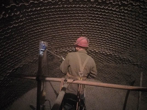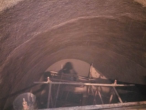 榮盛葛洲壩水泥廠預(yù)熱發(fā)電煙道耐火材料砌筑工程,以上是施工現(xiàn)場(chǎng)