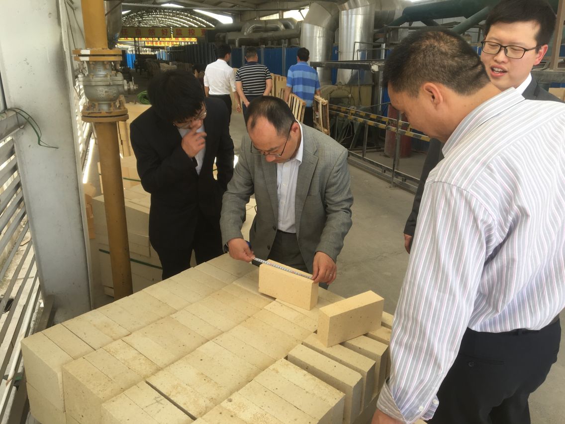 考察團(tuán)檢測榮盛耐材生產(chǎn)的鎂鉻磚